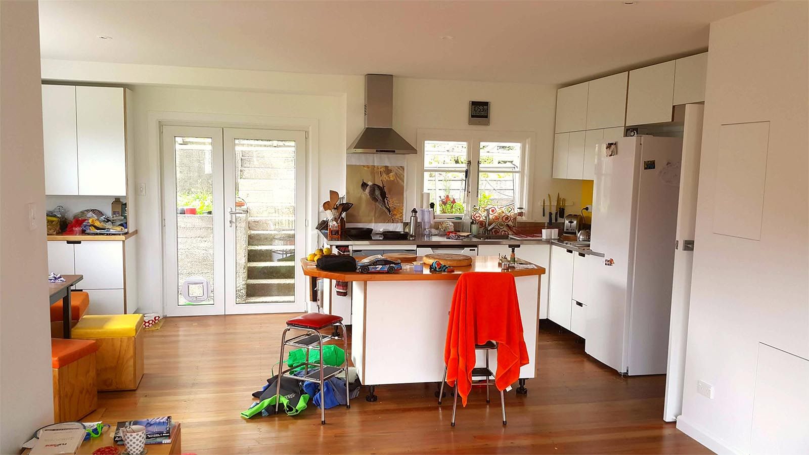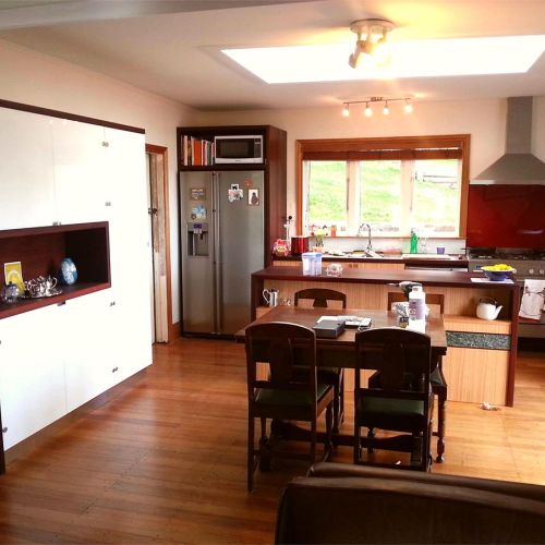 Before and after photos from a kitchen and lounge renovation project. Click the images to enlarge: